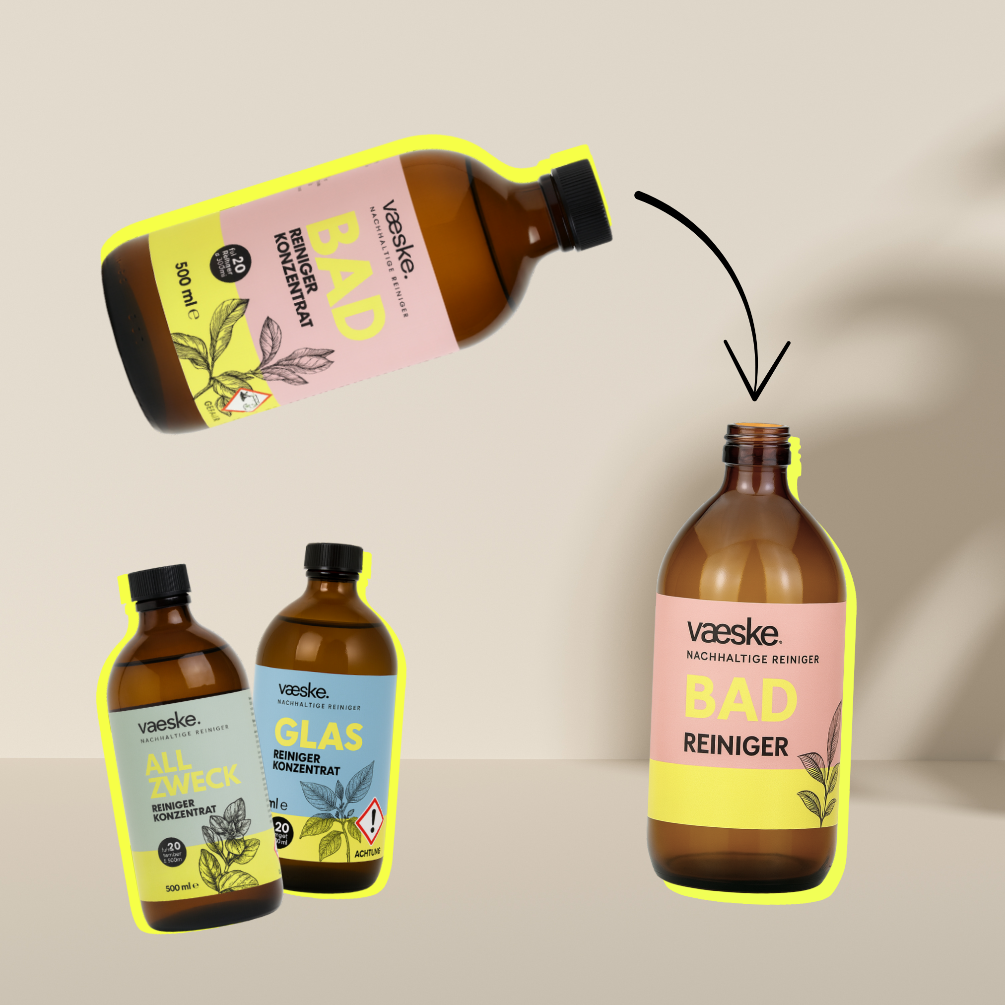 So funktioniert’s mit vaeske (einfach & alltagstauglich): - Konzentrat nach Anleitung mit Leitungswasser mischen.